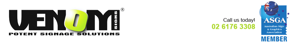 Reliable and versatile, Venom Signs is Canberra's first option when it comes to affordable and cost-effective sign solutions. Call or visit us and discuss what we can do for your business.